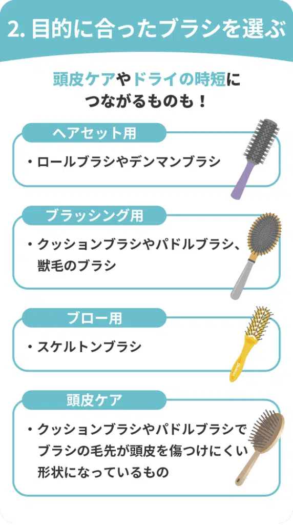ヘアブラシには、スタイリング目的のものだけでなく頭皮ケアやドライの時短につながるものがあります。